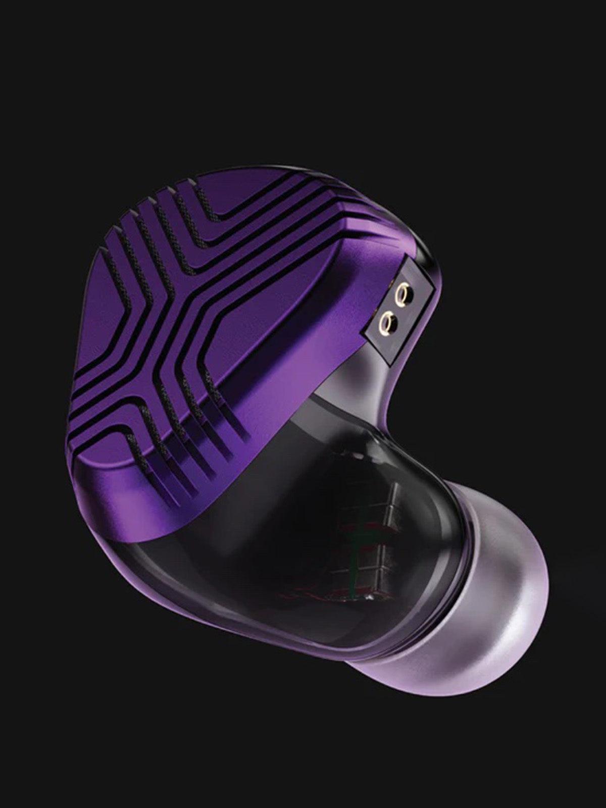 The meticulous design of the Vision Ears EXT MK II features a machined faceplate with an X design with delicately shifting lines, achieved through advanced CNC machining. Houses a vacuum-metalized acoustic mesh that protects internal components and allows the dynamic drivers to breathe and perform to their potential. The semi-custom shell is crafted from solid black acrylic with a black transparent section revealing the HALC and electrostatic drivers. The newly designed smaller nozzle offers an incredibly secure and comfortable fit without losing a single note of our signature sound.